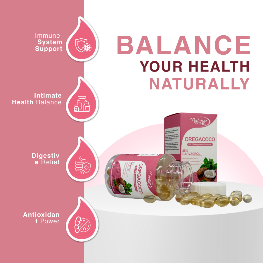 Boost your well-being with OREGACOCO, a carefully crafted formula that combines the benefits of oregano oil (85% Carvacrol) and coconut oil. This vegan supplement promotes overall wellness, with a special focus on intimate health and immune system support.